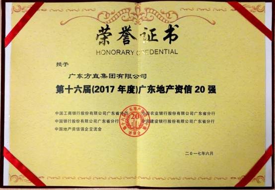 2017年6月8日,“資·信”地產(chǎn)金融峰會(huì)暨第十六屆(2017年度)廣東地產(chǎn)資信20強(qiáng)頒獎(jiǎng)典禮在廣州盛大舉行。