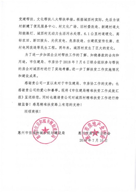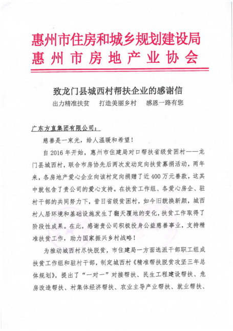 近日,方直集團(tuán)收到了來(lái)自惠州市住房和城鄉(xiāng)規(guī)劃建設(shè)局的一封感謝信。