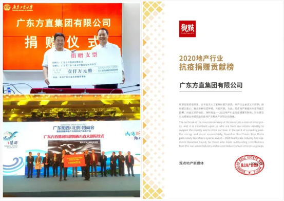 方直堅持城市的均衡發(fā)展,支持鄉(xiāng)村的基礎設施建設。2019年,方直捐資8000萬元建設陽西大劇院,助力城市文化建設。并多方面支持惠州龍門、陽西的基礎設施建設,改善當?shù)氐木幼?、交通條件。2020年1月,方直捐款200萬元馳援武漢,抗擊新型冠狀病毒肺炎疫情。多年來,方直屢屢為遭到自然災害破壞的雅安、玉樹、九寨溝以及博羅、惠東等災區(qū)捐獻物資支持受災地區(qū)家園建設,截至目前,此類善款捐助物資約2.2億元,與社會、城市共克時艱。