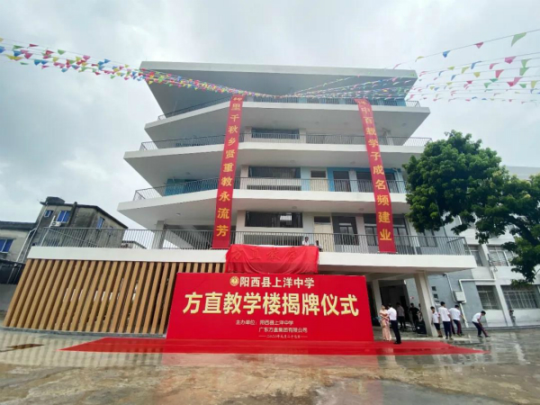 2020年9月27日,方直集團(tuán)捐建的上洋中學(xué)“方直教學(xué)樓”落成典禮暨移交儀式隆重舉行!陽(yáng)江市委常委、陽(yáng)西縣委書記孫波同志和方直集團(tuán)董事長(zhǎng)陳專先生出席揭牌儀式。陽(yáng)西縣委常委、縣政府、人大、政協(xié)、教育局和鎮(zhèn)委鎮(zhèn)政府等相關(guān)領(lǐng)導(dǎo)、方直集團(tuán)相關(guān)領(lǐng)導(dǎo)及上洋中學(xué)全體師生近千人全程參與。