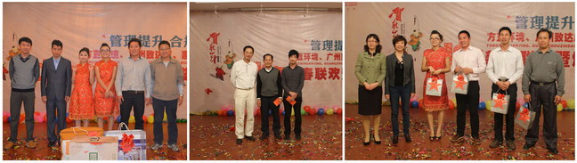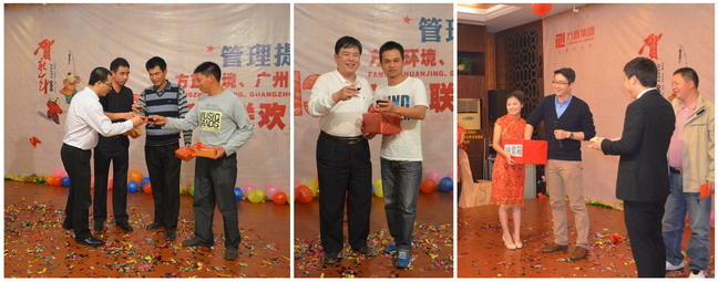 晚會(huì)主要分兩部分進(jìn)行,第一部分為頒獎(jiǎng)環(huán)節(jié),分別對(duì)2012年度優(yōu)秀團(tuán)隊(duì)、優(yōu)秀管理者及優(yōu)秀員工進(jìn)行頒獎(jiǎng)表彰;第二部分為抽獎(jiǎng)活動(dòng),分別設(shè)置了特等獎(jiǎng)、一等獎(jiǎng)、二等獎(jiǎng)、三等獎(jiǎng)及幸運(yùn)獎(jiǎng),獎(jiǎng)品相當(dāng)豐富,中間還穿插了游戲環(huán)節(jié),現(xiàn)場(chǎng)氣氛十分活躍。